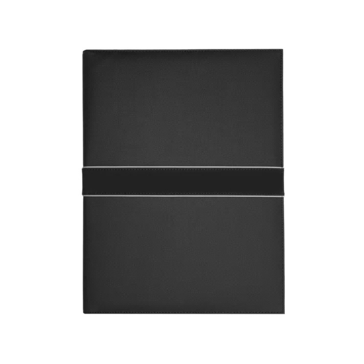 Η επιφάνειά του διαθέτει μαύρη υφή που θυμίζει διαμάντι, προσδίδοντας βάθος και πολυτελή αίσθηση. Το ματ band με το λογότυπο, διακοσμημένο με δύο γκρι ρίγες, δημιουργεί μια διακριτική αλλά έντονη αντίθεση, ενώ η ματ TPU του λογοτύπου ολοκληρώνει τον σύγχρονο σχεδιασμό. Κατασκευασμένος από PU, ο φάκελος συνδυάζει αντοχή και κομψότητα.