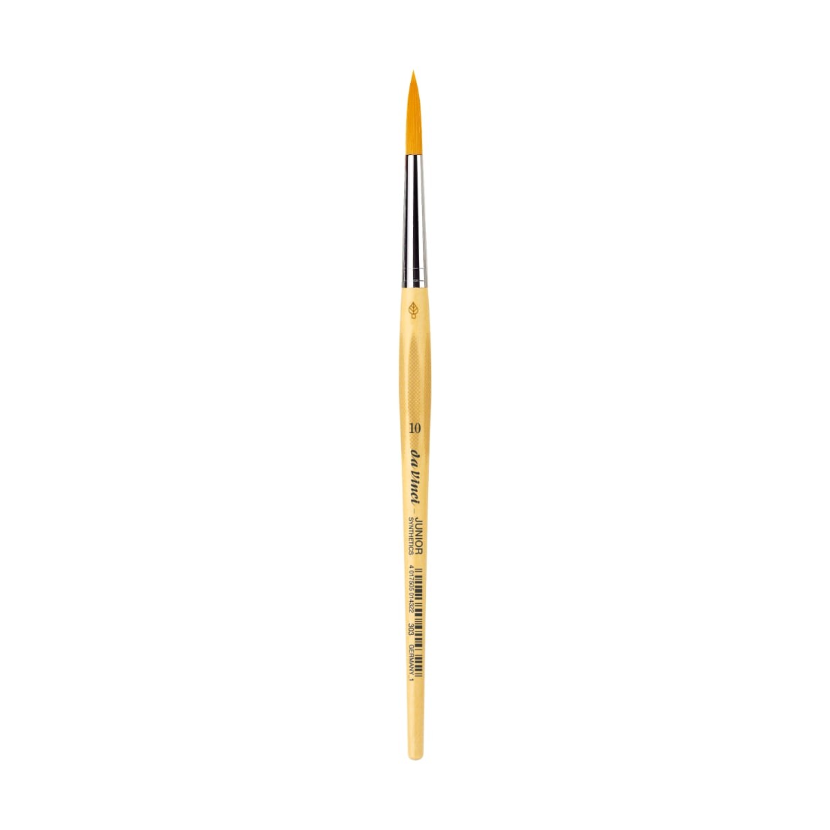 Στρόγγυλο πινέλο Da Vinci Junior Synthetics Series 303 No. 10 κατάλληλο για μαθητές και χόμπι από ελαστική χρυσού χρώματος συνθετική τρίχα με εξαγωνική γυαλιστερή λαβή.