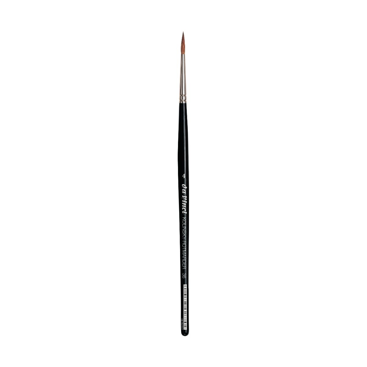 Στρόγγυλο πινέλο Da Vinci Red sable water colour Series 36 No. 4 κατάλληλο για χρώματα νερού από φυσική τρίχα Kolinsky red sable με κοντή μαύρη γυαλιστερή εξαγωνική λαβή για άνετο κράτημα.