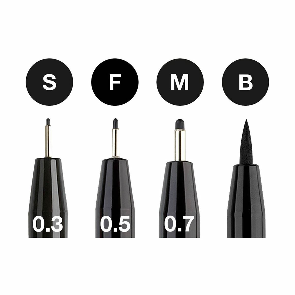 Στο σετ μπορείτε να βρείτε 4 πάχη μύτης σε Superfine: 0.3mm, Fine: 0.5mm, Medium: 0.7mm, Brush: Μύτη πινέλο για να καλύψετε όλες τις ανάγκες σας στο σχέδιο. Δημιουργείστε λεπτές και χοντρές γραμμές ή καλύψτε με μελάνι μεγάλες επιφάνειες.