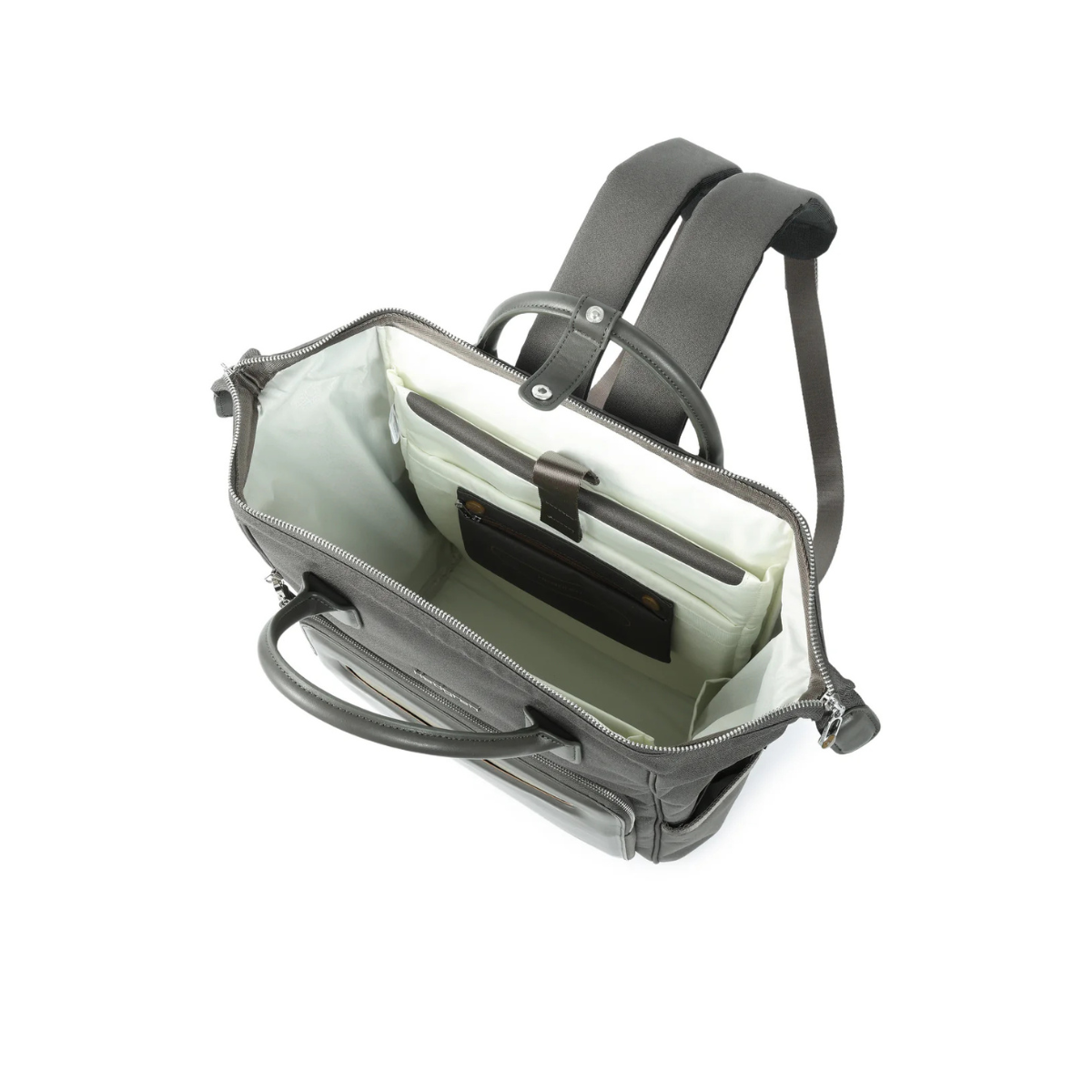 Η κεντρική θήκη έχει extra φαρδύ άνοιγμα, ώστε να μπορείτε εύκολα να βλέπετε και να οργανώνετε τα προσωπικά σας αντικείμενα, με ειδικές θέσεις για το κινητό, το laptop, το tablet, τα κλειδιά, τα έγγραφα και τα στυλό σας. Περιλαμβάνει τσέπη με προστασία RFID, θήκη για έγγραφα/χαρτιά και χώρο για τον εξοπλισμό γυμναστηρίου, επιτρέποντάς σας να μεταβαίνετε άνετα από το γραφείο στο γυμναστήριο.