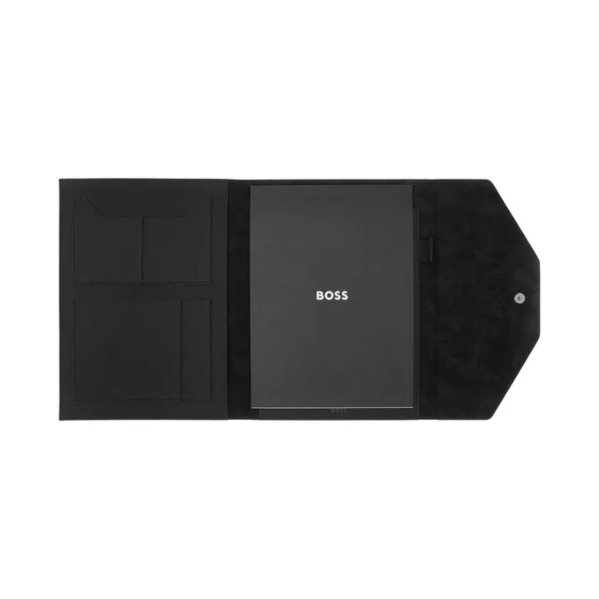 Το λογότυπο της HUGO BOSS σε gun metal φινίρισμα λειτουργεί ως διακριτική αλλά δυναμική υπογραφή, ενισχύοντας την premium ταυτότητα του φακέλου. Το αποτέλεσμα είναι ένα απλό, κομψό και σύγχρονο αξεσουάρ γραφής, που συνδυάζεται εύκολα με όλα τα προϊόντα της συλλογής.