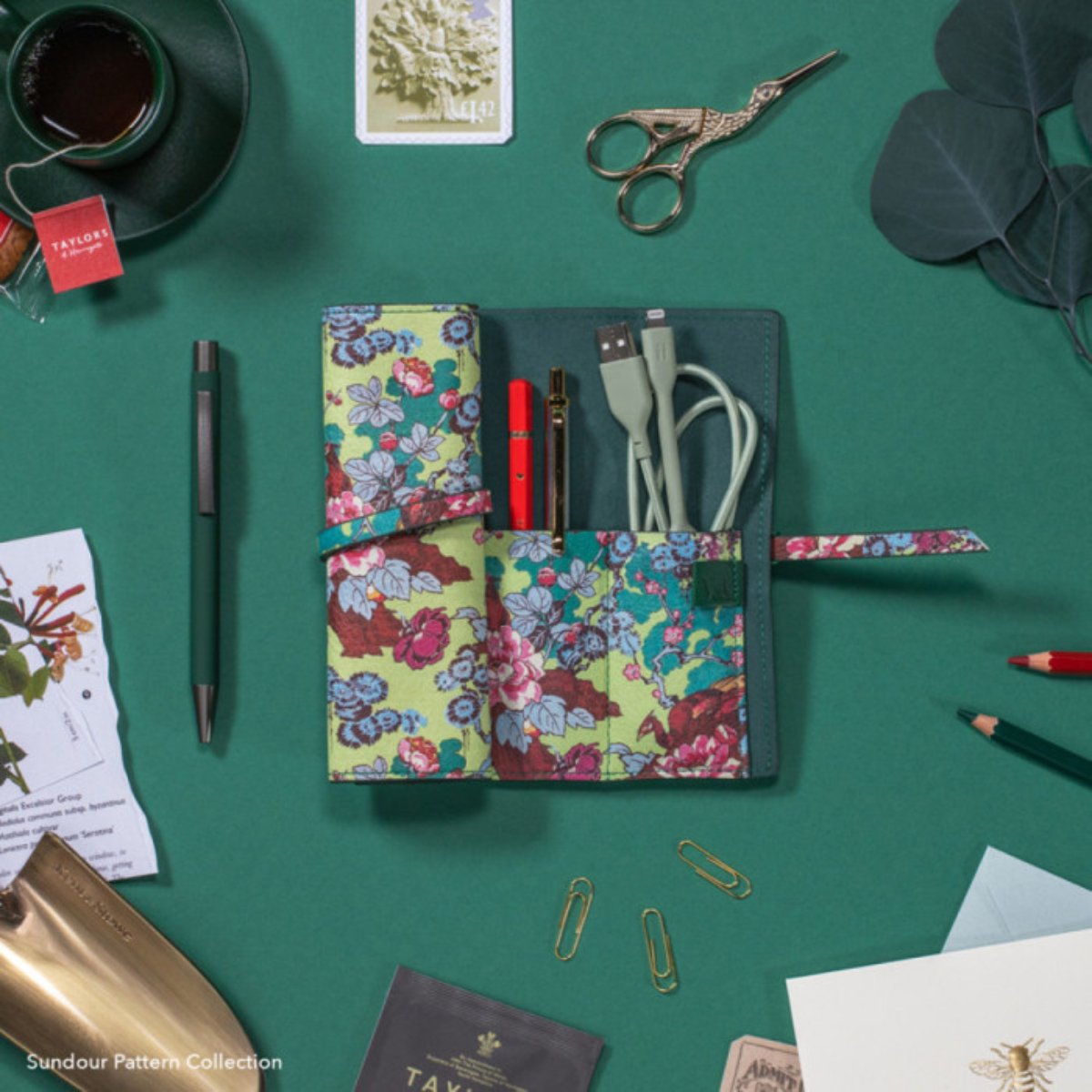Οργανώστε τα αγαπημένα σας gadgets με στυλ, χάρη στη θήκη Bookaroo Tech – Tidy V&A Sundour, ένα εκλεπτυσμένο αξεσουάρ που συνδυάζει πρακτικότητα και διαχρονική αισθητική. Σε συνεργασία με το Victoria & Albert Museum (V&A), επιλέχθηκε το μοναδικό σχέδιο Morton Sundour “Chinoiserie furnishing fabric” από τις συλλογές υφασμάτων και ταπετσαριών του μουσείου. Οι εντυπωσιακές πράσινες αποχρώσεις, σε συνδυασμό με το κομψό μοτίβο πουλιών, χαρίζουν μια σύγχρονη αλλά και διαχρονική αίσθηση.