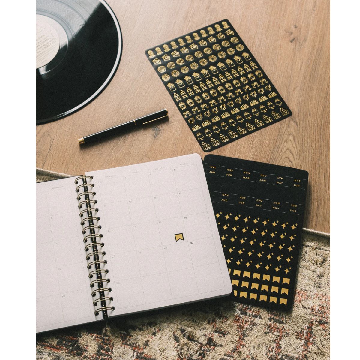 Ντυμένο εξολοκλήρου με μαύρο ύφασμα και με χρυσά γράμματα, αποτελεί το απόλυτο must-have ημερολόγιο που ακολουθεί τις τάσεις και σας βοηθά να οργανώνετε την καθημερινότητά σας με αυτοπεποίθηση και στιλ.