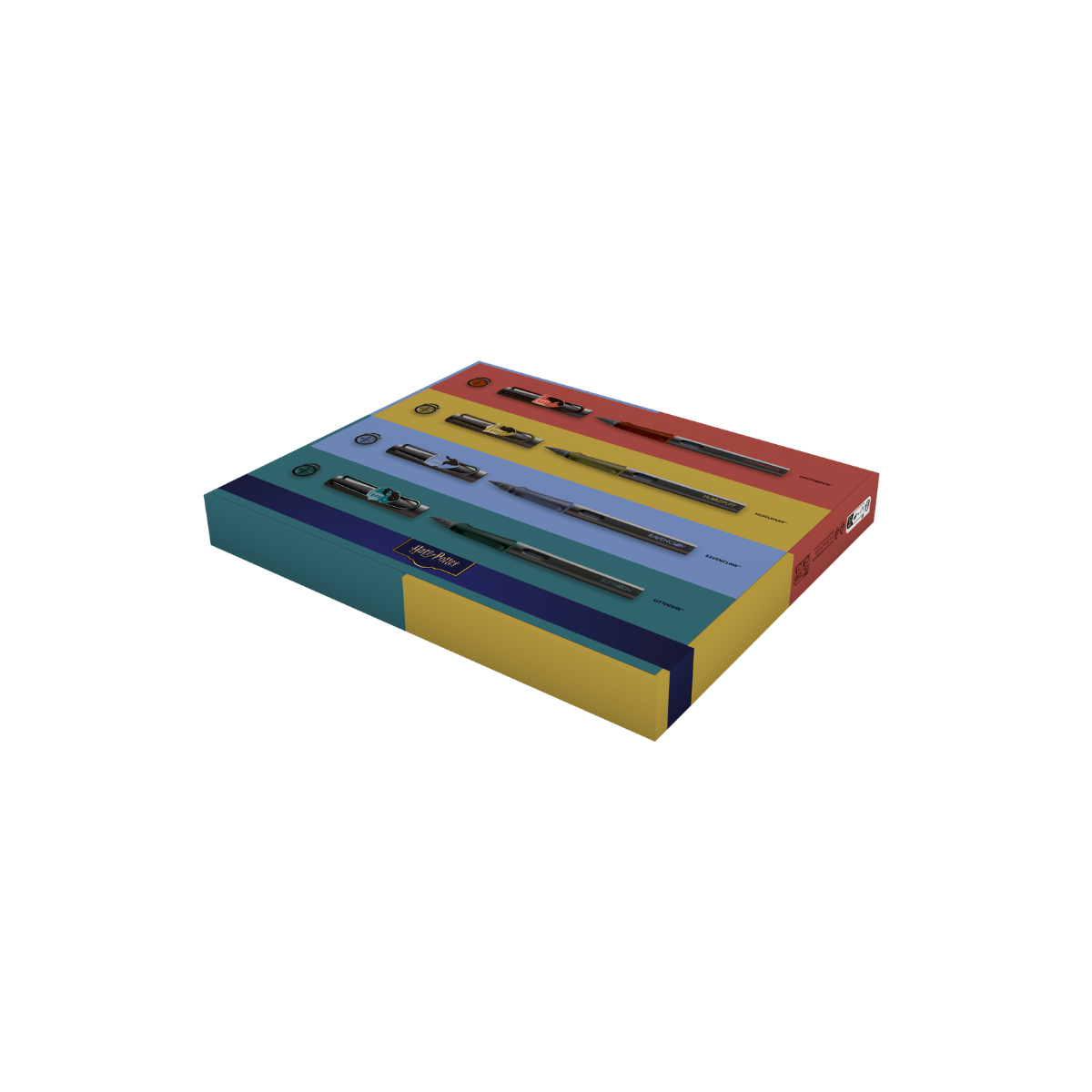 Το σετ περιλαμβάνει τέσσερις πένες: Gryffindor, Slytherin, Ravenclaw, Hufflepuff.
