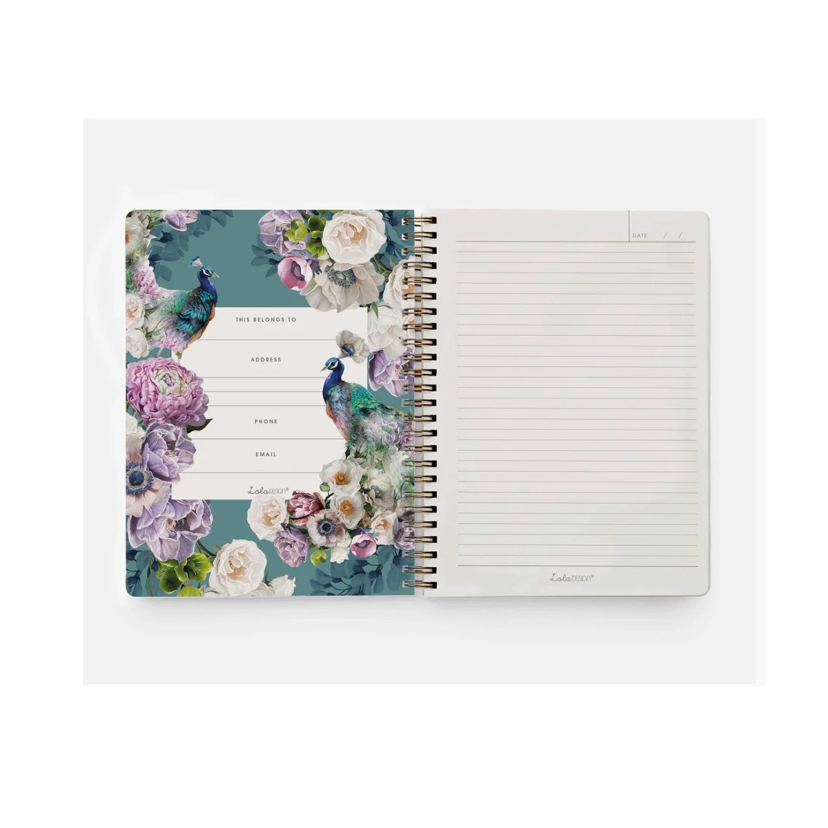 Μείνετε απόλυτα οργανωμένοι με το εντυπωσιακό B5 σπιράλ τετράδιο σε σχέδιο παγώνι της Lola Design. Αυτό το σημειωματάριο διαθέτει 250 σελίδες με γραμμές, καθώς και ειδική ενότητα με κουτάκια επιλογής και χώρο για προτεραιότητες, ιδανικό για την οργάνωση των καθημερινών σας υποχρεώσεων και to-do lists.