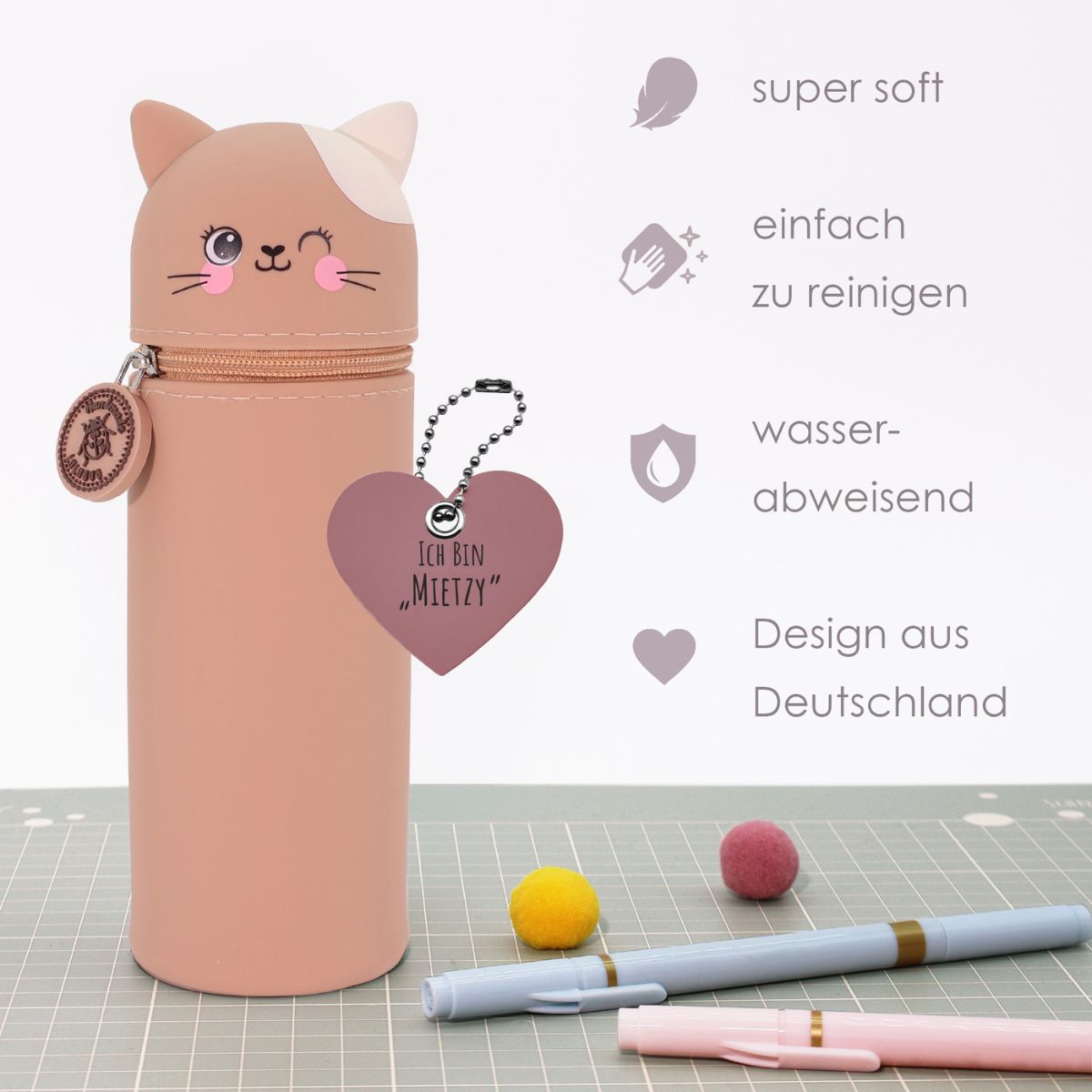 Η κασετίνα Miezy με σχέδιο γατούλας είναι μια κομψή και χαριτωμένη επιλογή που ξεχωρίζει με το minimal και γλυκό design της. Τα απαλά χρώματα και οι λεπτομέρειες την κάνουν ιδανική για καθημερινή χρήση, στο σχολείο και το σπίτι.
