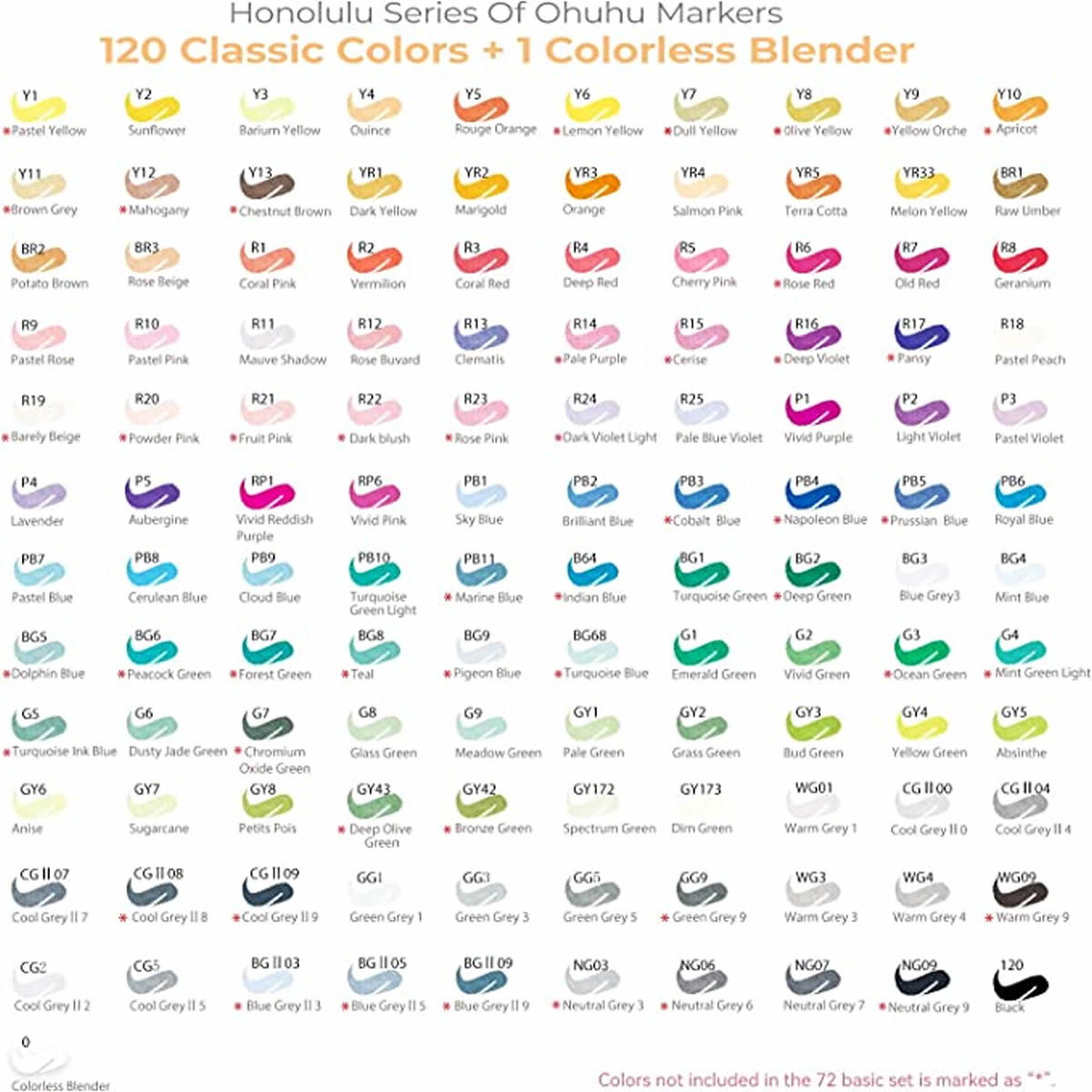 OHUHU Honolulu Alcohol Art Markers Σετ Μαρκαδόρων 120 χρωμάτων Brush & Chisel