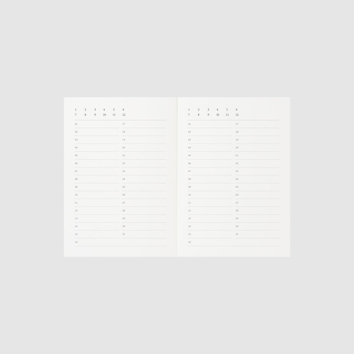 Αυτό το minimal σημειωματάριο A6 είναι σχεδιασμένο για 4 μήνες ελεύθερης χρήσης χωρίς χρονολογίες και σας προσφέρει ευελιξία και άνεση στην καθημερινή οργάνωση. Η εσωτερική του δομή χωρίζεται σε τρία μέρη: μηνιαίο πλάνο για 4 μήνες, ημερήσιες σελίδες (1–31) και σελίδες με κάνναβο για σημειώσεις, ώστε να προσαρμόζετε τη χρήση του στις ανάγκες σας.